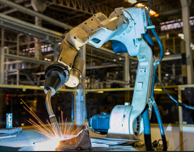 Robot with three welding stations, MIG brazing welding, and automatic parametric programming.